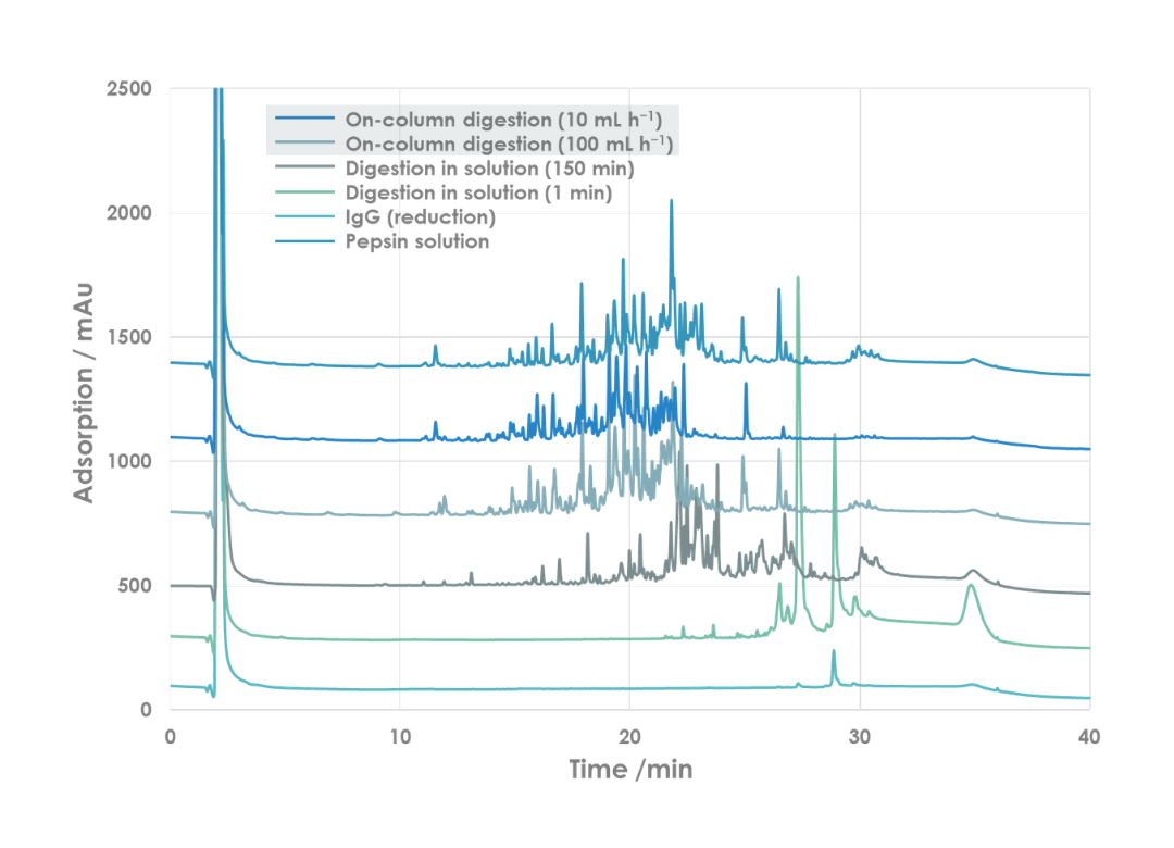 SPM with immobilized pepsin achieves superior digestion efficiency compared to reactions in solution without inhibiting enzyme activity.